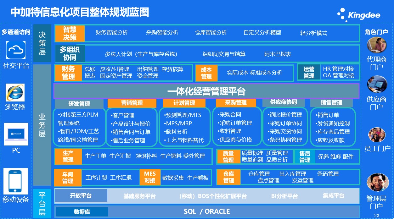 因此,基于金蝶云·星空,圍繞青島中加特 “研產供銷”一體化布局,構建6大管控平臺支撐企業(yè)整體體系,構建青島中加特集團化管控平臺應用架構,擴大市場占有率。